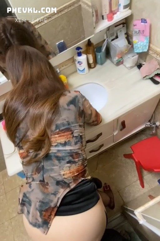 Doggy em áo dài từ nhà tắm ra ngoài