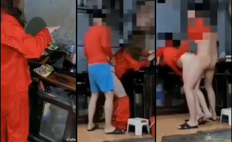 Vợ đang nấu mỳ tôm mà cũng không yên với ông chồng nứng cặc